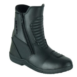 Motorcycle biker touring waterproof boot made of laminated leather, rubber sole, PVC mid sole, YKK zipper, Hipora waterproof lining, foam mesh lining, all sizes from 36 to 47 , custom design and customer logo possible